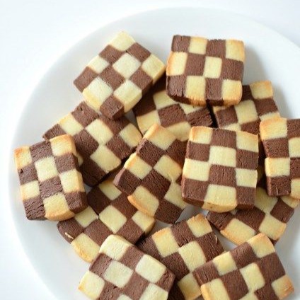 Checkerboard Cookies adalah cookies cantik dengan pola kotak-kotak dua warna yang menyerupai papan catur. Terbuat dari kombinasi adonan vanilla butter cookies dan chocolate cookies, sehingga menghadirkan perpaduan rasa manis lembut dan cokelat yang kaya. Teksturnya renyah, lembut, dan buttery, cocok untuk dinikmati bersama teh atau kopi. Selain rasanya yang lezat, tampilannya yang rapi dan elegan membuat Checkerboard Cookies menjadi pilihan sempurna untuk hadiah, hampers, atau sajian di acara spesial.
